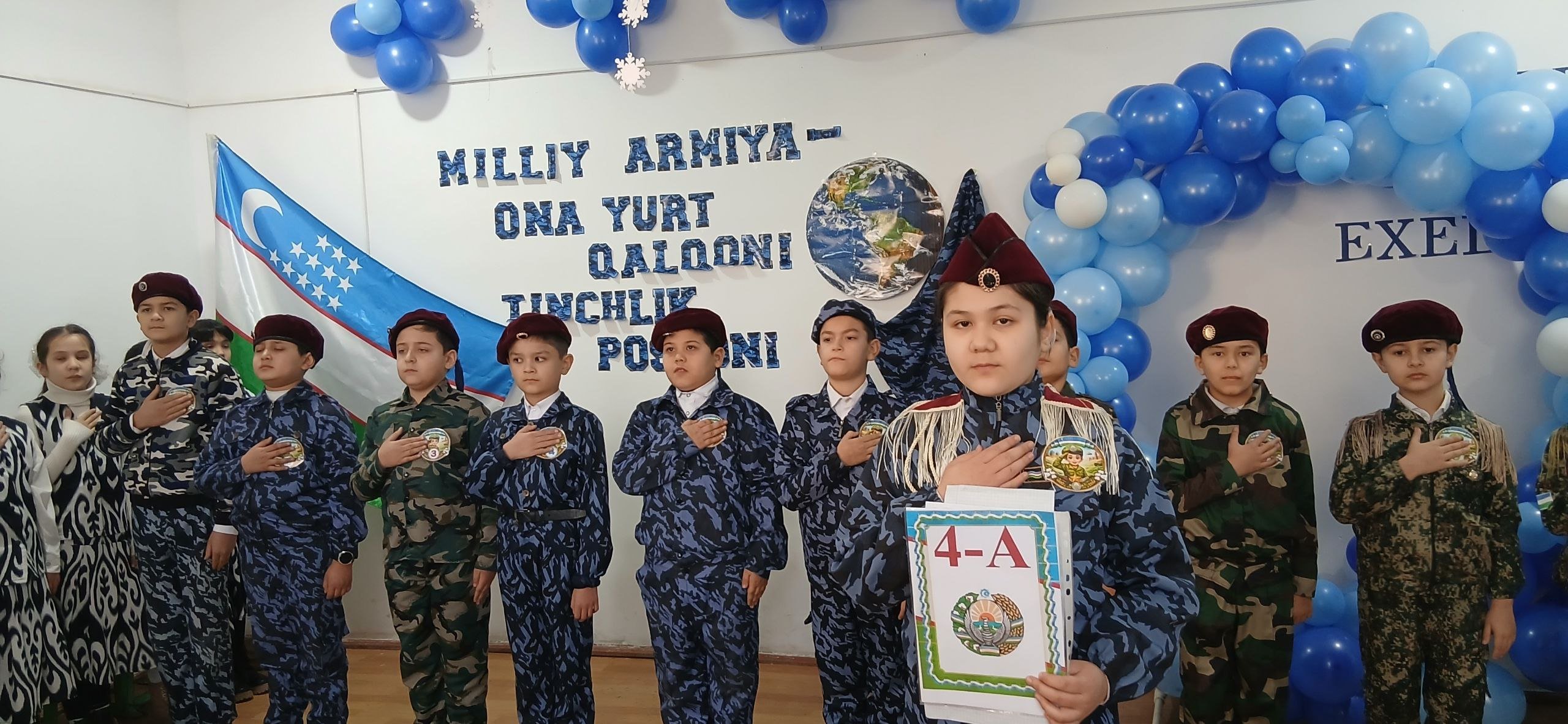 Oʻzbekiston Respublikasi Prezidentining 2025-yil 1-dekabrdagi "Oʻzbekiston Qurolli Kuchlari tashkil etilganligining 34-yilligi hamda Vatan himoyachilari kuni bayramiga tayyorgarlik koʻrish va uni yuqori saviyada oʻtkazish toʻgʻrisida"gi PF-70-sonli Farmonining tegishli bandlarini bajarish yuzasidan Yangiariq tuman 26 - sonli umumiy oʻrta taʼlim maktabining 4 - A sinfida "Vatanparvarlik oyligi" doirasida va 14-yanvar "Vatan himoyachilari" kuni munosabati bilan "Milliy armiya-ona yurt qalqqoni, tinchligimiz posboni" shiori ostida tadbir boʼlib oʼtdi.